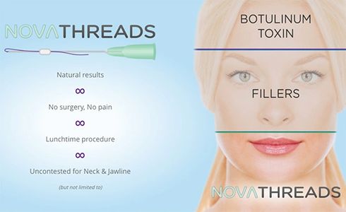 No need to go under the knife! NovaThreads is the Face-Lift alternative! It can fill wrinkles and slightly lift the skin. Additionally, as a result of the PDO being absorbed, the skin naturally produces collagen. As we age, the effects of gravity become more noticeable on our faces, especially as our facial support structure weakens and we lose facial fat. The areas that are generally affected are the eyebrows, areas around the eyes, the cheeks, the jowls and the neck. The result is a longer, more square-shaped and older-looking face.